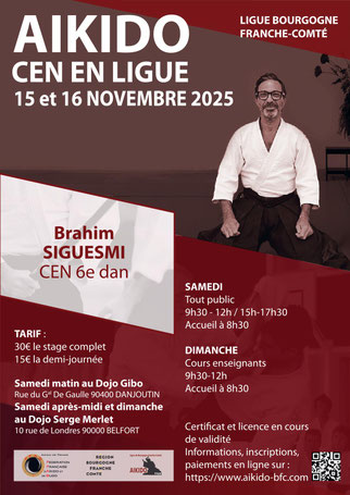 22 octobre 2025 [STAGE] Week-end du 15 et 16 Novembre 2025 : Stage ouvert à tous à Belfort Week-end du 15 et 16 Novembre 2025 : Stage ouvert à tous à Belfort encadré par Brahim SiGuesmi CEN 6e Dan. Connexion à Facebook tagPlaceholderCatégories : Aïkido, Stage, Débutants, Confirmés, Ouvert à tous, Pratique, CID Bourgogne